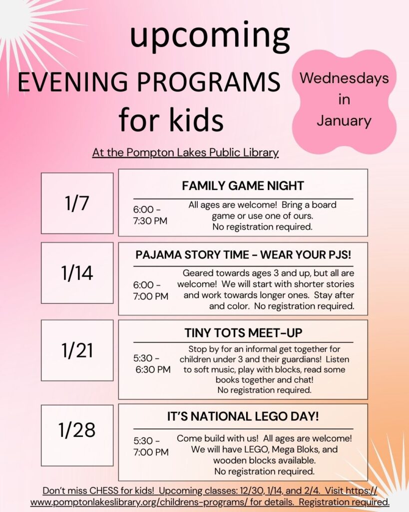 For questions or comments you may email Mrs. Ashley or call the Children’s room at 973-835-5661.